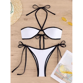 Customized Triangle Bandage Bikini Sexy Solid Color Bikini Beach Resort Swimsuit